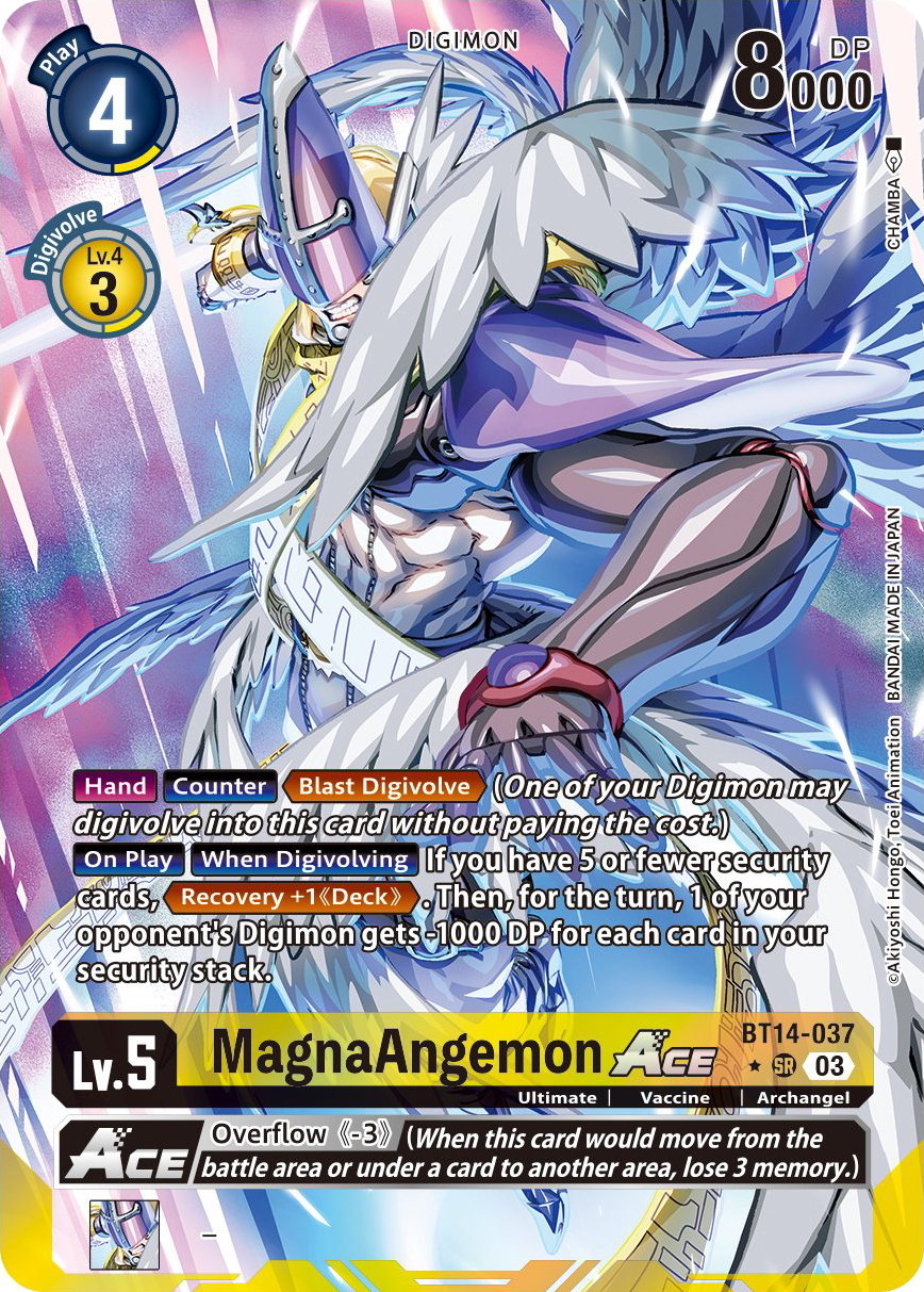 This is a MagnaAngemon ACE BT14-037 (Alternate Art)2 (Super Rare) from the Blast Ace set.